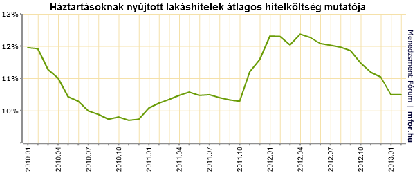 Előző hónapban még aut mutatták a számok, hogy hiába csökkennek a kamatok, a hitelköltség emelkedett, vagyis az egyéb, járulékos költségeket növelhették meg a bankok, vagy az alacsonyabb kamat ellenére is a hitelt igénylők a drágább termék felvételére jogosultak. Februárban ez már nem jellemző, mivel a felvett hitelek átlagos hitelköltsége stagnált januárhoz képest. Az akkori 10,5 százalék 10,49 százalékra mérséklődött, mint már kiderült, emelkedő átlagos kamat mellett.