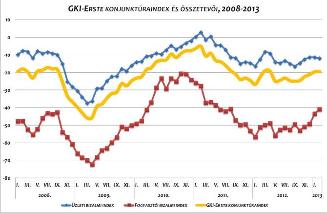 A GKI (www.gki.hu) által, az EU támogatásával végzett felmérés szerint a fogyasztói várakozások tovább emelkedtek, azonban az üzletiek kissé romlottak. A magyar gazdaság helyzetének megítélése az iparban és az építőiparban látványosan kedvezőbb lett. A lakosság a saját pénzügyi helyzetének következő egy évét jobbnak, várható megtakarítási képességét viszont romlónak látja.