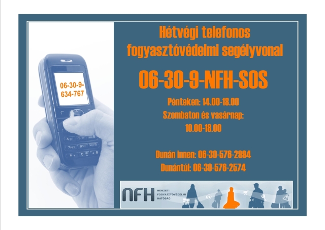 A Nemzeti Fogyasztóvédelmi Hatóság közel másfél éve indította útjára hétvégi telefonos ügyfélszolgálatát, hogy a fogyasztók esetleges problémáikra szakemberek segítségével találjanak megoldást akár a hétvégén is, amikor a legtöbb hivatal zárva tart.