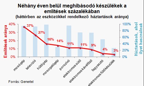 A kiterjesztett garancia iránti piaci igényt jól mutatja, hogy a Genertel által megkérdezett háztartások 46 százalékában már előfordult, hogy valamelyik elektromos készülék a garancia lejárta után röviddel hibásodott meg. Az ilyen tapasztalatokkal rendelkezők leggyakrabban, 37 százalékban a mosógépet jelölték meg, 27 százalékban a tévé, 16 százalékban a hűtőgép bírta túl rövid ideig, de elgondolkodtató, hogy a ritkább, csupán minden harmadik háztartásban előforduló mosogatógépet is 14 százalékban említették.