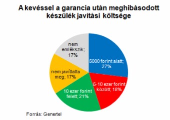 A röviddel a garancia lejárta után meghibásodott készülékek 17 százalékát a tulajdonosok nem javíttatták meg, elsősorban arra hivatkozva, hogy nem érte volna meg a befektetett összeg és utánajárás. Kétharmaduk ugyanakkor élt a javíttatás lehetőségével, 39 százalék a javításért legalább ötezer forintot fizetett ki. Mindez nem kevés összeg, főként, ha figyelembe vesszük, hogy 43 százaléknyian további kiszállási díjat is fizettek a szerelőnek.