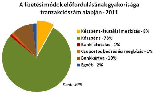 A magyar háztartások több mint 85 százaléka rendelkezik legalább egy bankszámlával, és hasonló a bankkártyával rendelkezők aránya is. Ugyanakkor a magyar társadalom készpénzcentrikusságát jelzi, hogy a lakossági tranzakciók értékének alig 10 százalékában kerül sor elektronikus fizetésre, bankkártya használatára.