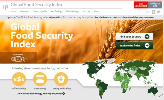 Az EIU által az országok rangsorolására kidolgozott globális élelmezésbiztonsági index (Global Food Security Index - GFSI) három alindexből tevődik össze. Az egyik az élelmiszerek megfizethetőségét veszi figyelembe, vagyis azt, hogy az egyes országokban milyen árszint mellett lehet megvásárolni az élelmiszereket. Itt olyan mérőszámokat összesít az EIU, amelyek például azt mutatják be, hogy az élelmiszerre költött összegek mekkora hányadát jelentik a háztartások költéseinek, illetve mekkora a mezőgazdasági termékekre kivetetett vámok mértéke, vagy mekkora állami támogatást kapnak a gazdák.