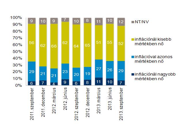 A család reáljövedelmére vonatkozó várakozások továbbra is kedvezőtlenek: minden második megkérdezett azt valószínűsíti, hogy jövedelme az inflációnál kisebb mértékben növekedhet, vagyis reáljövedelme csökkenését prognosztizálja.
