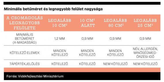A rendelet előírja minimális betűméretet, vagyis biztosítani kívánja az olvashatóságot, mivel a fogyasztók korábban sokszor képtelenek voltak elolvasni a kötelezően feltüntetett információkat. Emellett szabályozza a csomagoláson a rendelkezésre álló jelölhető felület függvényében a kötelezően feltüntetendő információkat is. Ha elegendő felület áll rendelkezésre, akkor a tápérték jelölést kötelező táblázatos formában feltűntetni. Három kötelező elem van, amelynek még a legkisebb felületre is fel kell kerülnie, ez a név, az allergéntartalom és a minőség megőrzési idő.
