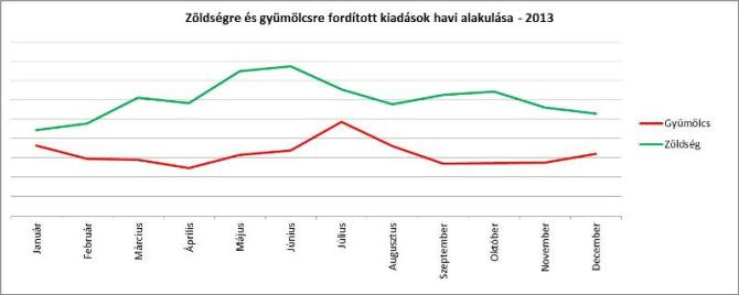 Egy átlagos háztartás egy év alatt közel 70 kilogrammnyi gyümölcsöt és 130 kilogrammnyi zöldséget vett 2013-ban. A legintenzívebb zöldség- és gyümölcsvásárlók az idősebb, 50 évnél idősebb háziasszony által vezetett, valamint a magasabb jövedelemmel rendelkező háztartások.