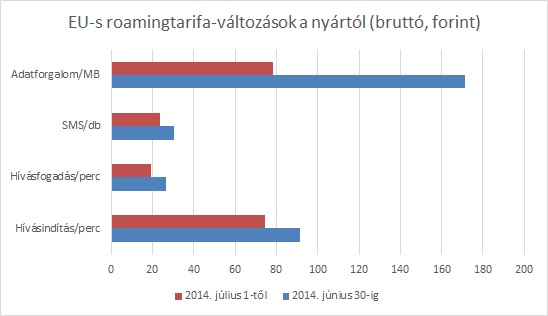 2014. július elsejétől ismét csökkennek az Európai Unión belüli mobilhasználat költségei az uniós országok állampolgárai számára. Ettől az időponttól egy percnyi indított hívás után az EU-ban működő mobilszolgáltatók az EU-n belül legfeljebb nettó 0,19 eurót, egy percnyi fogadott hívás után legfeljebb 0,05 eurót, egy SMS után nettó 0,06 eurót, 1 megabájt adat után pedig legfeljebb nettó 0,20 eurót számlázhatnak majd.
