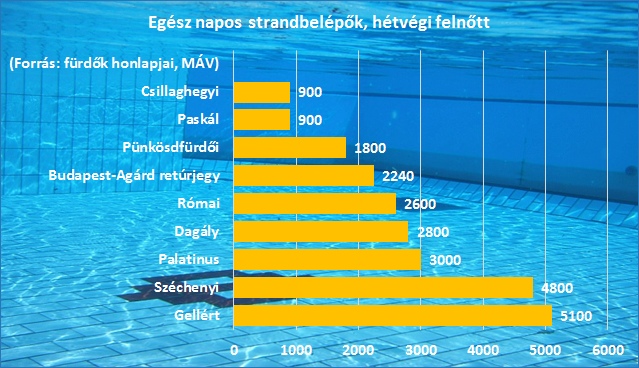A gyerekek jól elvannak a gyermekmedencében, ha pedig a felnőttek csak a napozás közben szeretnének egyszer-egyszer megmártózni egy úszómedencében, akkor a listánkon szereplő két „diszkont-strand”, a Paskál és a Csillaghegyi is megteszi. Ezek jóval olcsóbbak az úgynevezett élményfürdőknél, ahol meleg vizes medencék, sodrások, hullámgépek, vízköpők és hasonló látványosságok is vannak. Az utóbbiak (például Dagály, Palatinus) háromszor annyiba is kerülhetnek, legalábbis a felnőtteknek.