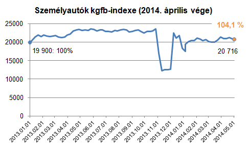 Idén az első négy hónap során átlagosan 6 százalékkal olcsóbban kötöttek kötelező biztosítást az autósok, mint 2013 hasonló időszakában. Az index időbeli alakulásából látható, hogy az év végi kampányban tapasztalt díjzuhanást követően a mutatószám az év elején visszaemelkedett a tavaly januári bázisérték közelébe. A idei díjszintek az első negyedévben aztán 4-6 százalékkal alacsonyabb szinten követték a tavalyi ármozgást, ám a 2013 áprilisi díjemelkedés az idén teljesen elmaradt. Azóta jelentősen kinyílt az olló a tavalyi és az idei értékek között: a különbség április végére már a 12 százalékot is elérte.