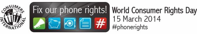 Március 15-e a fogyasztóvédelem világnapja, ez alkalomból a Consumers International (CI) nemzetközi fogyasztóvédelmi jogvédő szervezet a mobiltelefonálással kapcsolatos jogok betartására és az információáramlás erősítésére koncentrál. „Tisztázzuk a mobilos jogainkat!” – ezzel a szlogennel indítja el mobiltelefonálással kapcsolatos tájékoztató kampányát a Consumers International.