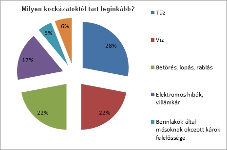 A felmérés válaszadói a leginkább tartott kockázatok között a tűzön és betörésen kívül a vizet és elektronikus hibákat, villámkárt említették, mint azokat, amitől a leginkább szeretnék megóvni ingatlanjukat és ingóságaikat.