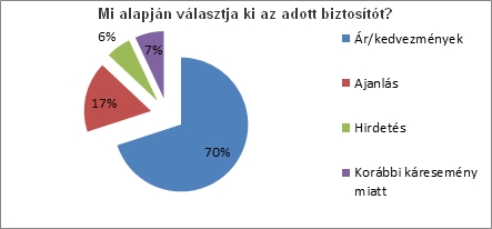 A megkérdezettek 70 százaléka változatlanul az árat, illetve a kedvezményeket tekinti elsődlegesnek, amikor biztosítót választ, kis részüknek fontos, ha megbízható ismerősöknek már voltak jó tapasztalatai egy adott biztosítóval, míg a hirdetések alig játszanak szerepet a választásnál.